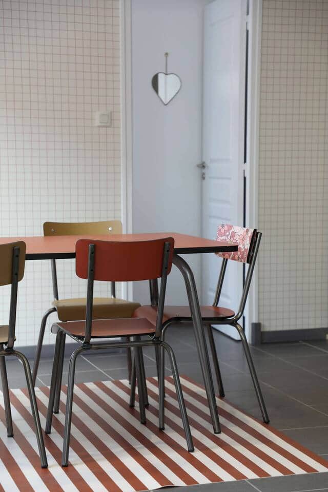Notre espace salle à manger avec la table et ses chaises "Les Gambettes", que j'adore !!! J'y ai mis également un petit coin thé pour les petits moments "détente" de la journée